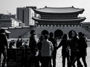 « Je n’avais jamais vu le palais de Gyeongbokgung sous la neige et encore celle-ci était en train de fondre au moment où j’ai pris cette photo au début du mois de février. A l’occasion du nouvel an lunaire, l’entrée du palais était libre. Malgré le froid, de nombreux coréens ont profité de ce jour férié pour venir se promener, souvent en famille dans les allées de la plus grande demeure royale de Seoul. De l’intérieur du palais, comme la plupart des visiteurs, on ne peut s’empêcher d’admirer la majesté de l’une des portes principales, avant de quitter les lieux. »